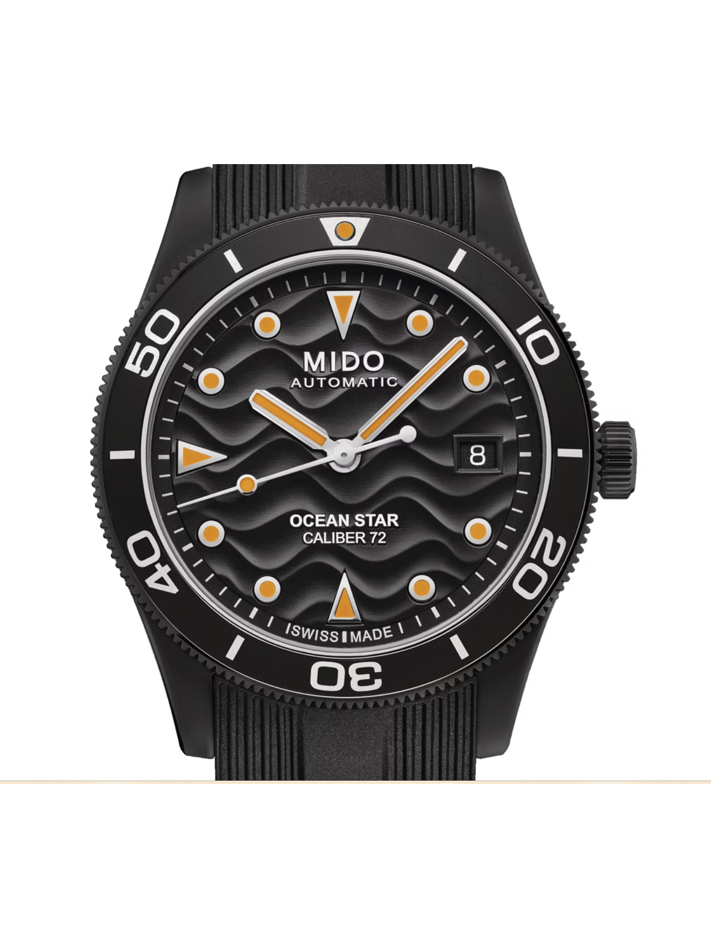- Bisel – Giratorio unidireccional de cerámica negra con acabado PVD. Aporta durabilidad, estilo y funcionalidad para medir tiempos con precisión.