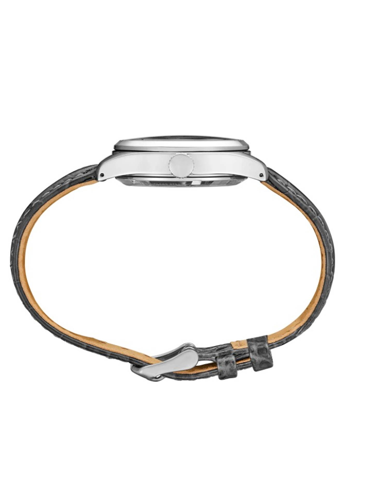 - Correa de cuero gris.