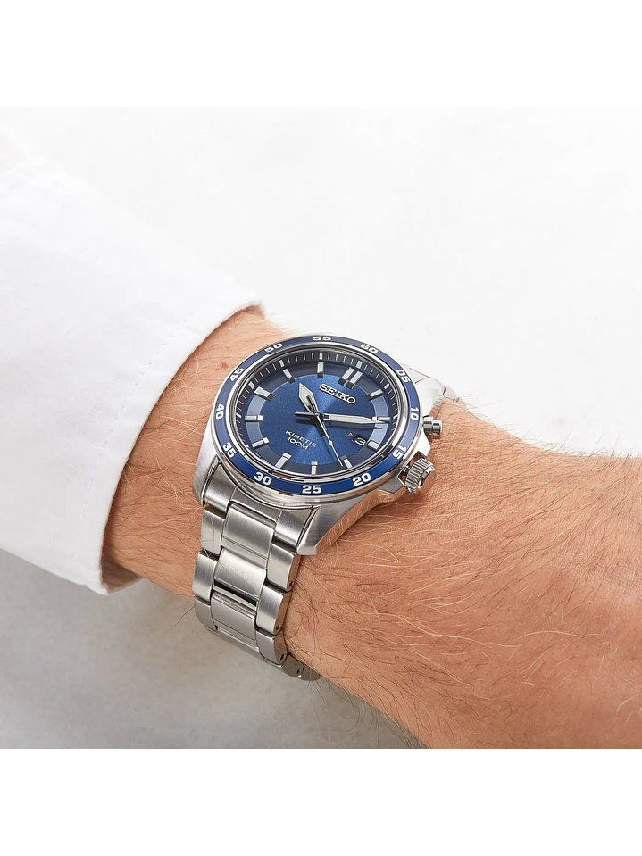 El Seiko Kinetic es un reloj con movimiento de cuarzo que utiliza la tecnología de conversión de energía cinética. El movimiento de tu muñeca carga una batería recargable que alimenta el reloj, eliminando la necesidad de cambiar la batería.